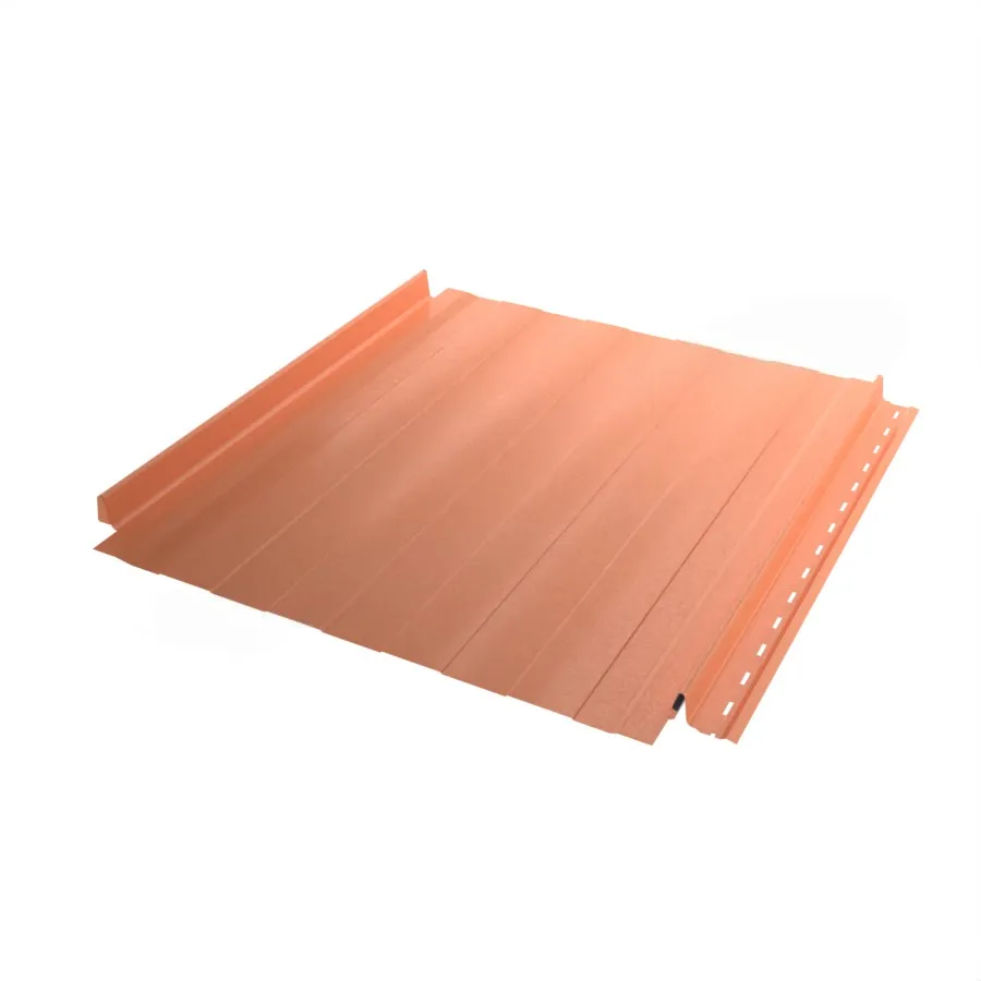 Заглушка замка и карнизный загиб фальцевых панелей от «Металл Профиль» вырублены заводским методом. Это значительно облегчит и ускорит их установку: не потребуется самостоятельно резать материал. Кроме того, чтобы соединить панели, не потребуется специальное оборудование — удобные замки защёлкиваются одним нажатием.