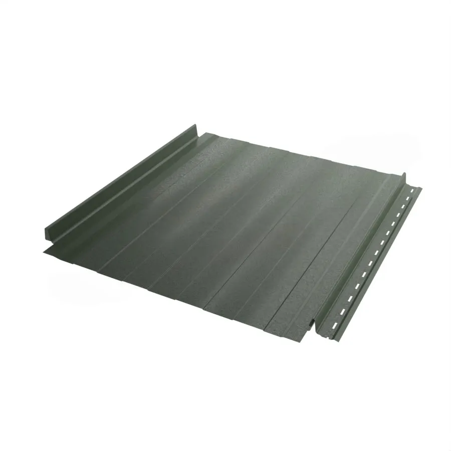 Важно отметить, что поверхность кровли, покрытой фальцевыми панелями, может быть немного волнистой. Обычно это связано с напряжением в металле, неровной обрешёткой или температурными расширениями. Эффект волнистости носит исключительно эстетический характер и не влияет на надёжность крыши. Чтобы его уменьшить, выбирайте и устанавливайте фальцевые панели с матовым полимерным покрытием и микропрофилированием поверхности (Накатка, Волна, Трапеция).
