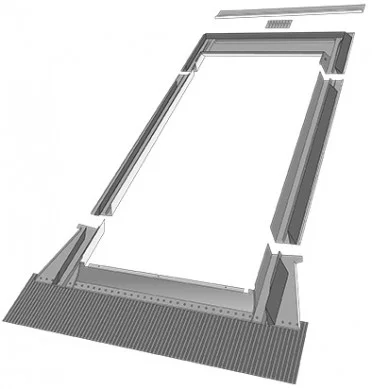 Оклад окна — это комплект желобов, который герметично соединяет мансардное окно с внешним покрытием кровли. Главное свойство оклада — защищать оконную раму и саму мансарду от попадания воды и влаги.