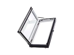 Мансардные окна с боковым открыванием с однокамерным стеклопакетом — оптимальный вариант для выхода на кровлю. Однокамерный стеклопакет обеспечивает оптимальное соотношение веса конструкции и теплоизоляции — подходит как для отапливаемых помещений, так и для технических чердаков.