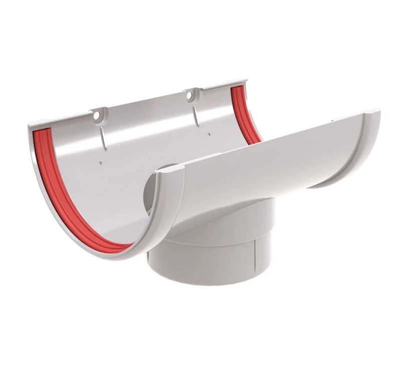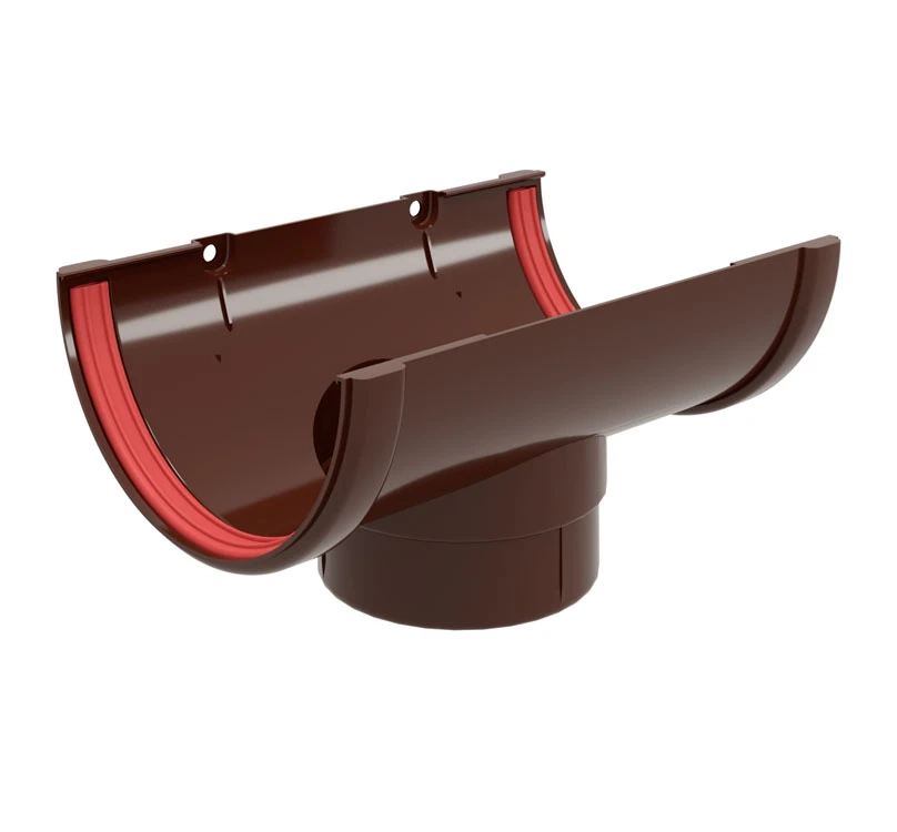Воронка желоба предназначена для перпендикулярного соединения водосточного желоба и водосточной трубы в системе водостока. Переходный элемент организует слив воды из желоба в водосточную трубу.