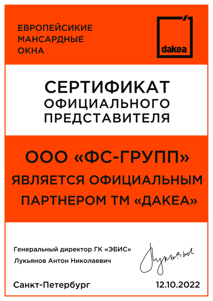 Сертификат официального представителя ТМ Дакеа