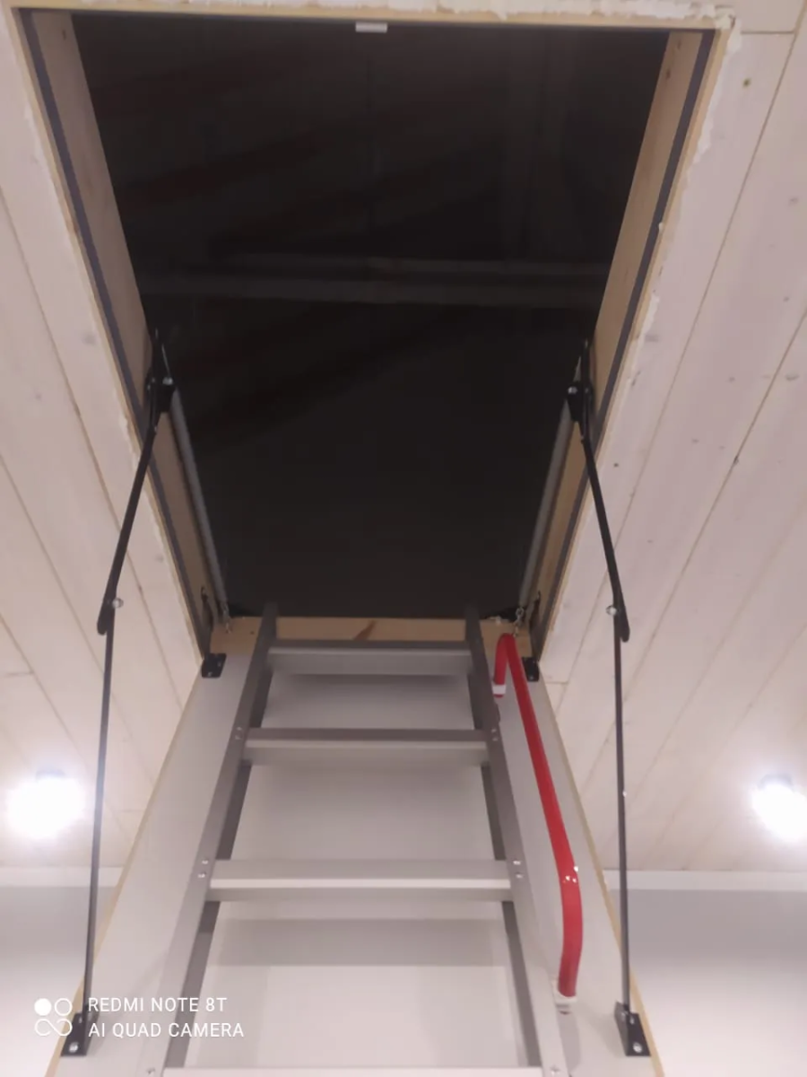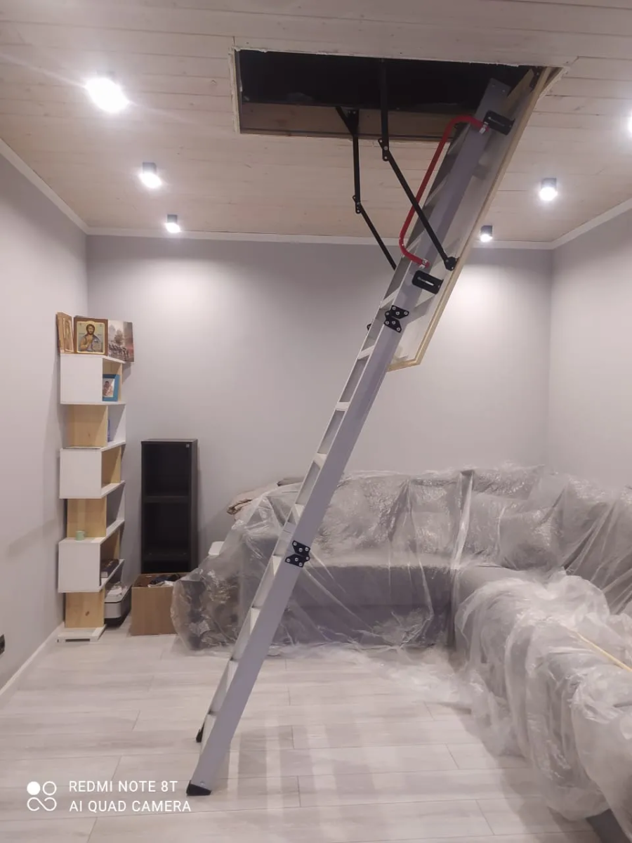 - Монтаж чердачной лестницы.