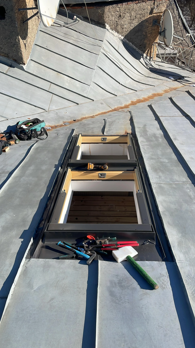 Монтаж мансардных окон Fakro (Факро) в вертикальный комплекс с комбинированным окладом